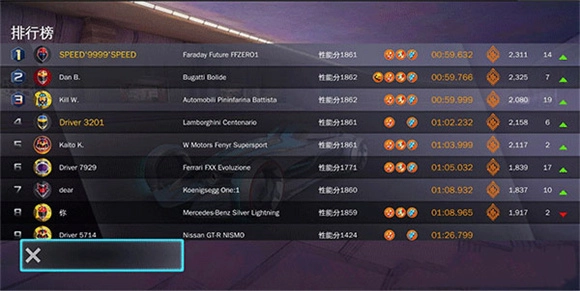 晋级冠军联赛后,尽量选用车辆性能分更高的车参赛,同时也要尽可能提升车辆的加速性能。