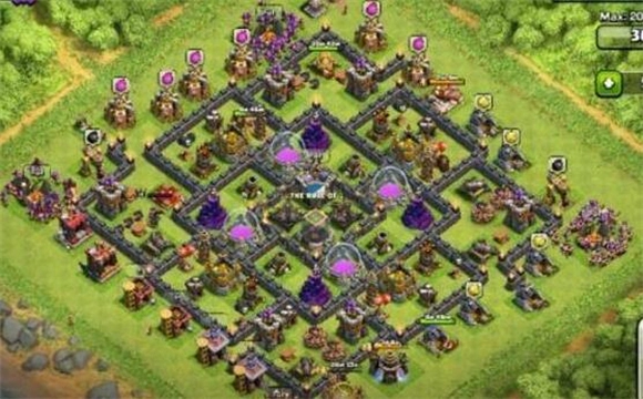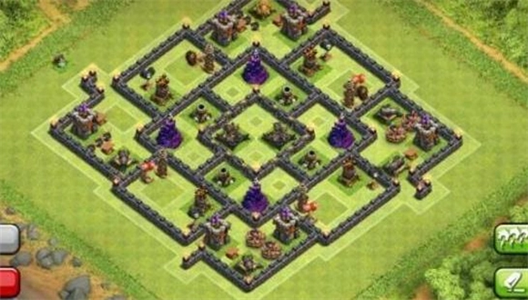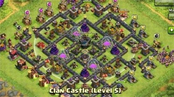 这个阵型有不少值得肯定的地方,对于9本中期的玩家而言,它最大的好处就是能保护好黑水——金币和圣水其实没那么紧缺,但黑水和8本时一样稀缺,再加上女王需要升级,所以这个阵型在9本中期还是挺实用的。城堡位置、金库分散布局,很适合9本日常守护资源。
