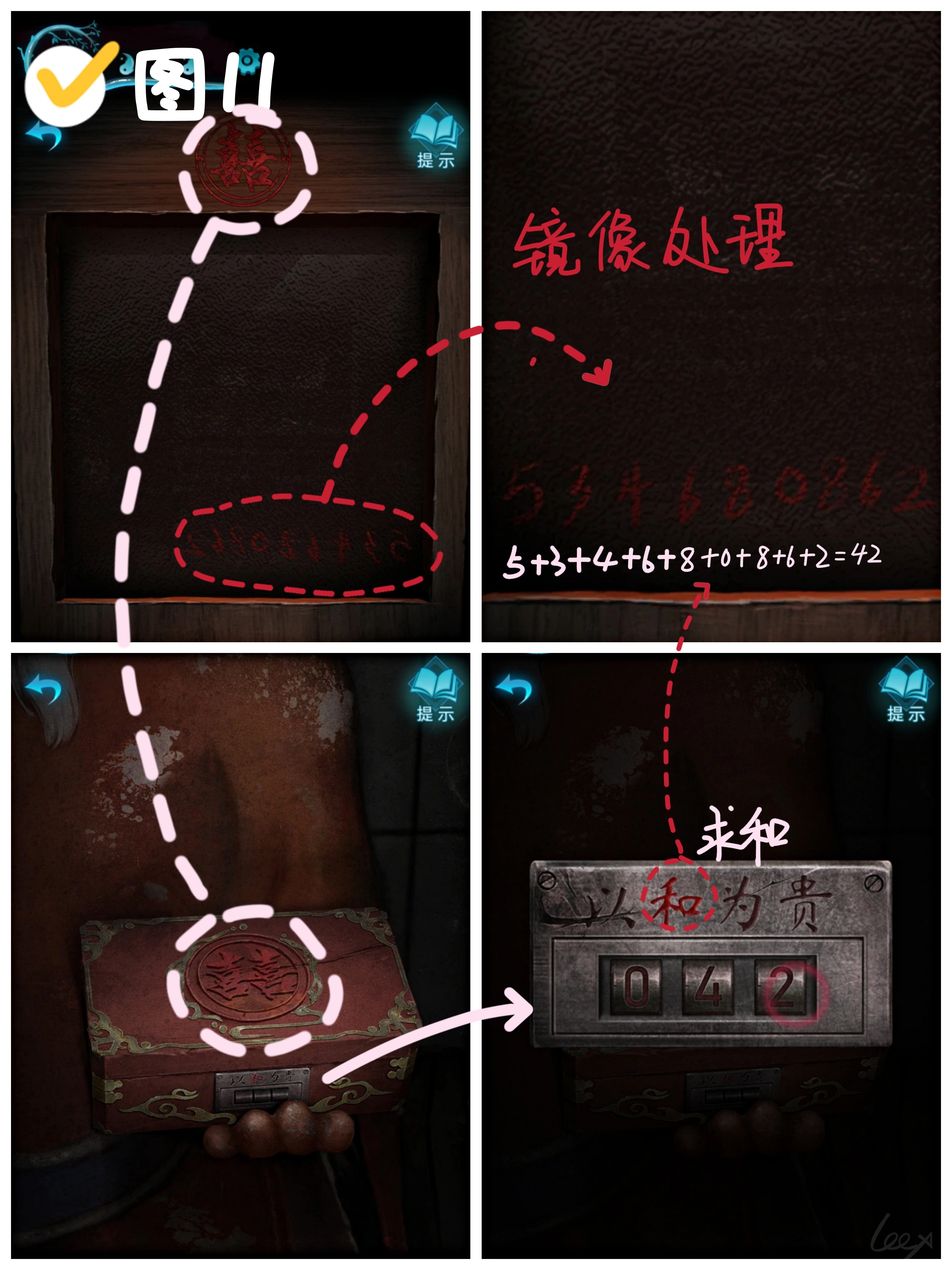 在婚庆用品店里,找到右侧柜子左上角的鞭炮并点击它。点击“开始”后,留意鞭炮亮起的先后顺序;等停止后,按照刚才记住的顺序依次点击,就能得到〔小零件〕。 进入易寿堂,把小零件装到下方的柜子上。接着参照《风水民俗小知识》第二页写的“北水-南火-东木-西金-中土”这个提示来解锁柜子,打开后就能拿到〔拨浪鼓〕了。