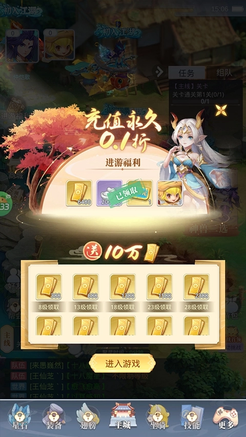 2、然后就可以享受0.1折开局和10万真冲卡。