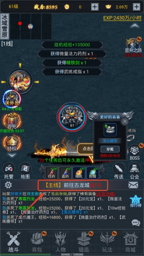 4、游戏内设置了高爆率的极品装备掉落机制,助力玩家在开荒阶段轻松解决装备获取难题。