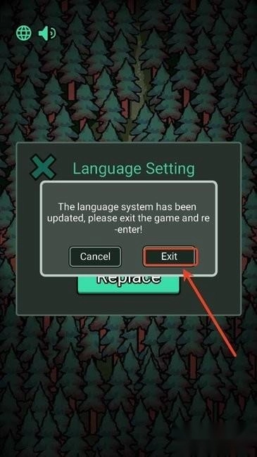 4、语言系统已完成更新,请退出游戏后重试,点击“Exit”按钮退出游戏并重新启动。