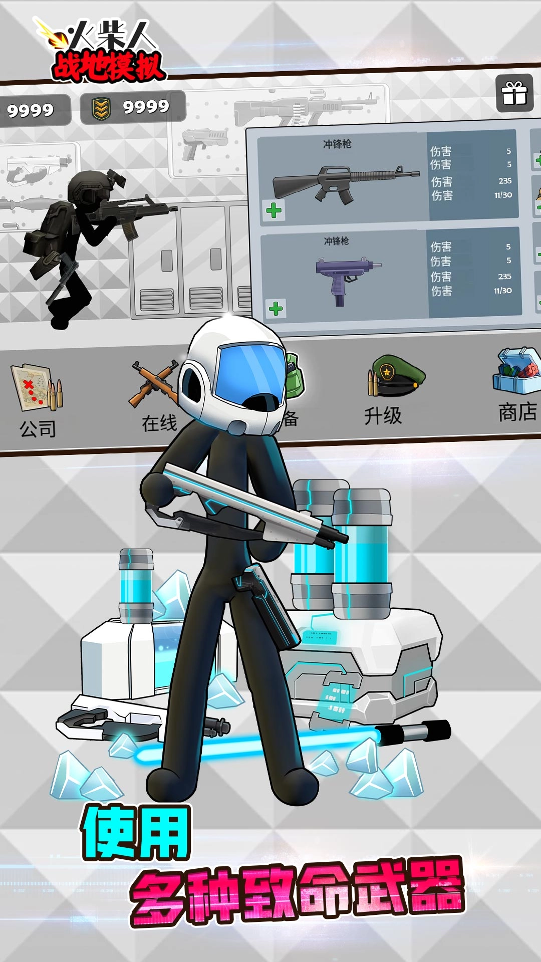2、你能够依据自身的偏好以及战斗时的实际需求,给火柴人战士搭配各式各样的武器与装备。