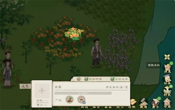 (注意:关闭自动种植后,把浆果和野菜集中在一处进行采摘。 )