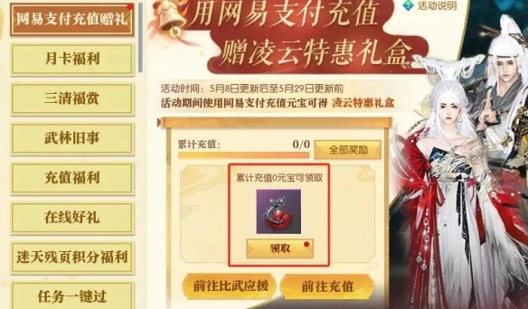 在《逆水寒》里,凌云能够用来兑换限定稀有外观,不少玩家想问免费凌云该如何获取。其实很简单,打开【比武大会 - 特惠商店】,在【每周福利】处能领取一个盒子,活动期间总计可以领取四个。另外,新开的网易支付界面还能再领取1个盒子。下面,就由小编为大家详细介绍《逆水寒手游》中凌云的获得方法!