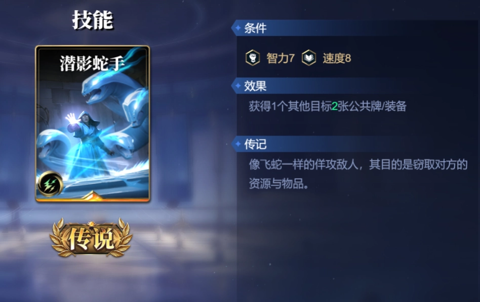 诡计多端与潜影蛇手,这两张构筑卡对智力属性和速度属性有要求。得益于【女神祝福】,赫拉能够轻松满足这两张卡的使用条件。借助【构筑之道】,赫拉能在削减对方手牌的同时获取公共牌,从而进一步拉大双方手牌的差距。