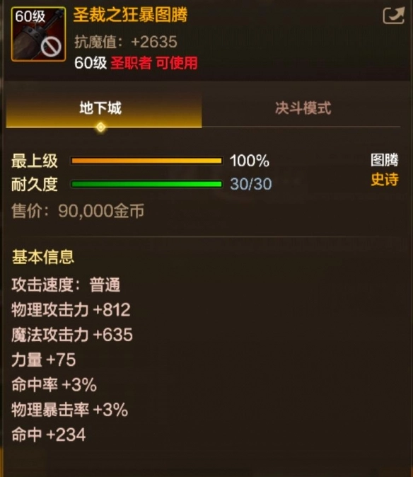 《地下城与勇士:起源》圣裁之狂暴图腾属性一览: