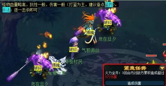 7、完成之后,前往大唐国境(坐标分别为24.230、30.199、17.199、12.183 ),按顺序找到【受伤村民】、【受伤巫祝】、【重伤村民】、【奇怪的石头】并与之战斗(总计4场战斗)。