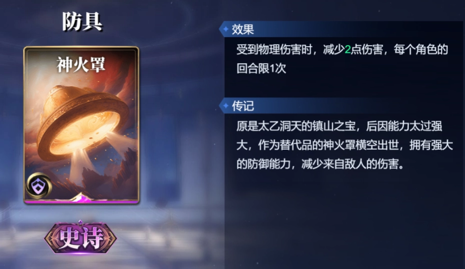 重塑可以在缺少手牌的时候补充公共牌资源,防具则选择神火罩。