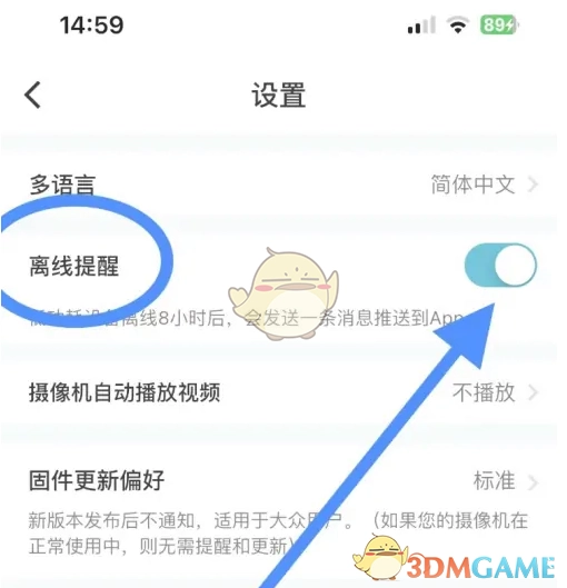 3、最后点击【离线提醒】,开启其旁的圆点即可。
