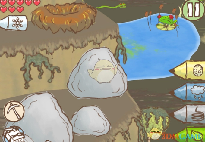 1.进入第六关后,首先向左方向前进。可以看到一个土坡上面的鸟巢,在鸟巢里画上一个蛋即可。