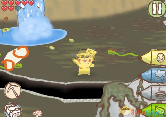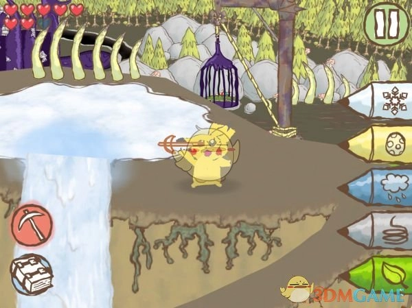 5、上去后,你能拿到画冰的笔。接着走到土坡的最高处,在水里画冰,画完往回走,你会看到冰中间有个心形的阴影。朝着这个阴影走去,进入一个洞中,就能获得爱心。随后从洞中出来。