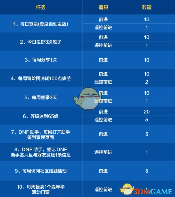 能够获得的奖励为:前进道具10个、遥控前进道具1个。