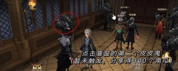 2. 踏入走廊后,径直朝里走,点击靠窗位置的第二个皮皮鬼,就能获取300个南瓜。