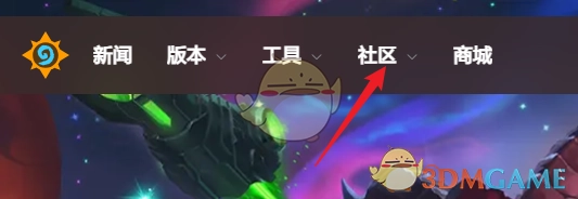 1. 第一步,打开炉石传说官网,接着点击页面左上方的【社区】功能。