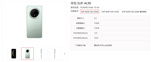 有网友在评论区分享了华为Mate 70 Air的背部实拍图,其型号显示为SUP-AL90,这与之前在电信终端产品库中登记的Mate 70 Air型号完全相同。