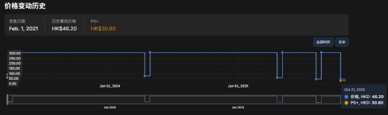 这款游戏原价308港元,当前优惠价46.2港元,已是历史最低价。不过PS Plus会员还能再享5%的额外折扣,折后价30.8港元,刷新了历史最低纪录。