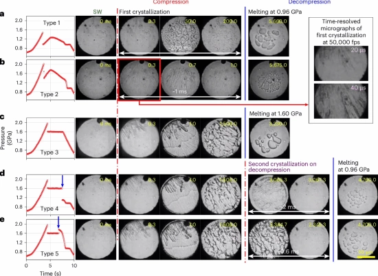 创造“冰 XXI”的核心在于一种名为“动态金刚石压砧(dDAC)”的先进技术。和传统设备缓慢加压的模式不一样,dDAC 可以在仅 10 毫秒的极短时间里,向水样品施加最高达 2 吉帕(GPa)的强大压力,这大约等同于地球表面大气压的 2 万倍。