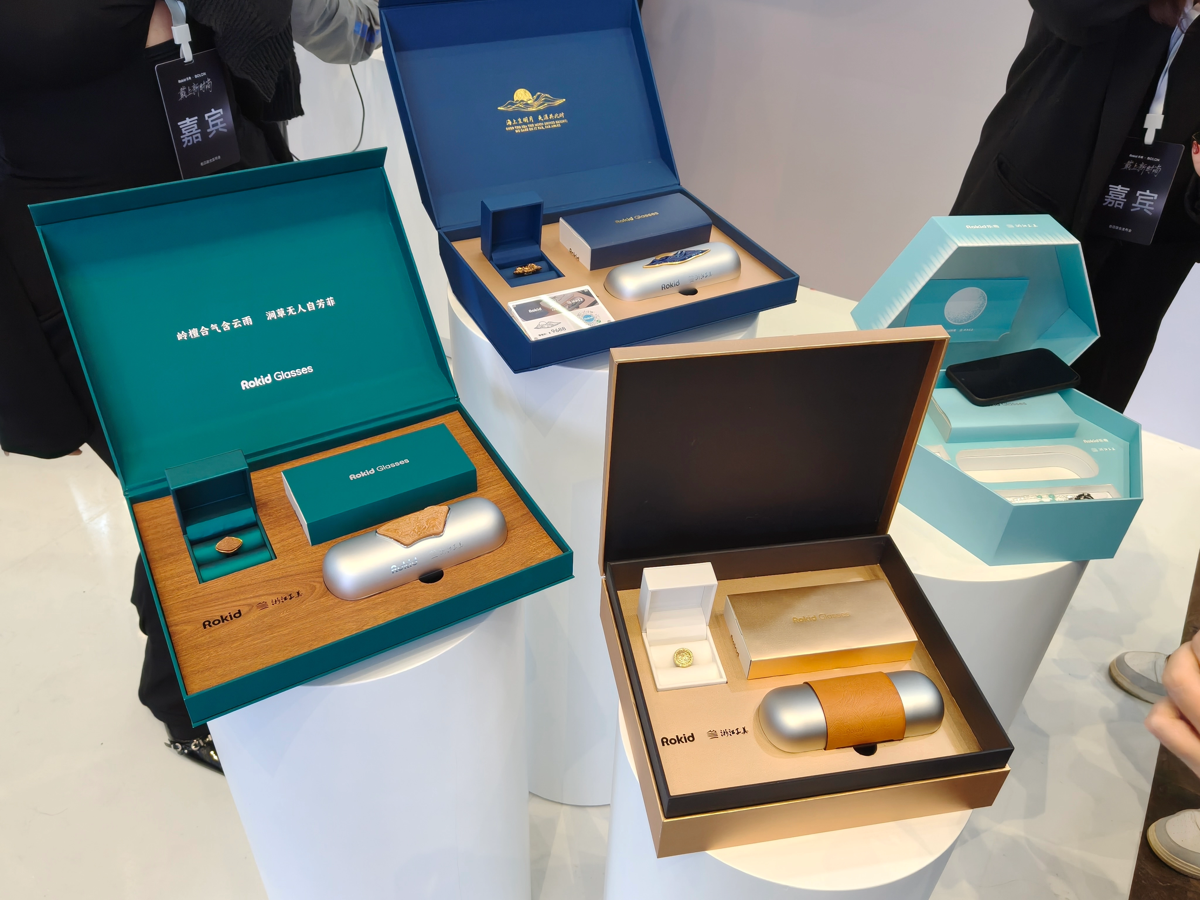 另外, Rokid 乐奇眼镜这次还在国礼版本之外又推出了「风林山火」国潮系列,每款都来自不同的工艺大师,从绣、刻、雕到滴釉都放进了产品外观设计里。