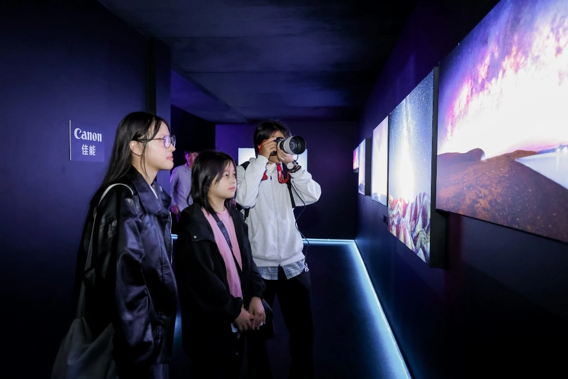 EOS影像艺术公园围绕多元化艺术公园这一核心主题,为前来参观的人们构建起一个融合视觉美感、文化浸润与创意启发的综合艺术场所。这里呈现的影像作品题材极为广泛,既有聚焦文化遗产的文物摄影,也有展现自然生态的黑水摄影,还包含动物与人物肖像摄影,以及难得一见的极光、地球维纳斯带等天文气象类摄影。借助沉浸式投影、空间音效等艺术装置的加持,展出的影像作品被转化为能够传递情绪的场域,观众在观看、聆听乃至触摸的过程中,得以与摄影作品背后的故事形成情感共鸣,进而领略到影像所蕴含的独特魅力。