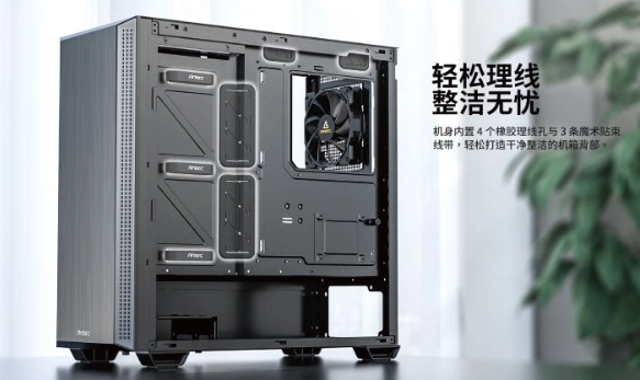 在理线设计上,机箱内部配备了4个橡胶材质的理线孔以及3条魔术贴束线带,能够帮助用户轻松梳理各类线材,让机箱内部环境始终保持整洁有序。