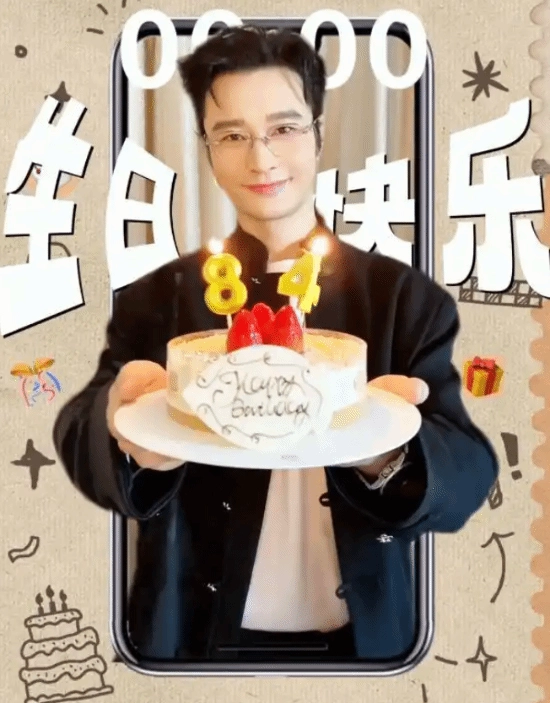 视频里他对着手机屏幕吹蜡烛,结果特效出了问题,把人“吹”得移出了画面,意外形成了滑稽的悬浮效果。更有意思的是,黄晓明手里的生日蛋糕上数字显示是“84”,看样子是他自己对着摆的,没顾上调整过来。