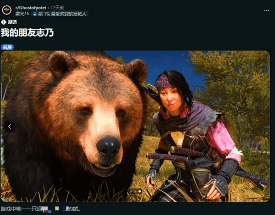 而在海外玩家社区reddit上,也早就有玩家分享了人熊合影的帖子。
