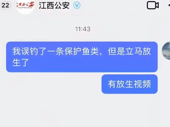 随后他立刻拨打了三个电话向警方报备,工作人员告知其属于误钓,只要及时放生,就不需要承担相关责任。