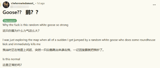 《燕云十六声》还未正式上线时,预注册玩家数量就突破了1000万;如今在Steam平台上,每日同时在线人数稳定维持在16万上下。无论是游戏的Reddit社区还是Steam论坛,都能看到不少玩家困惑又无奈的吐槽——他们纷纷“控诉”自己连大鹅都打不过。