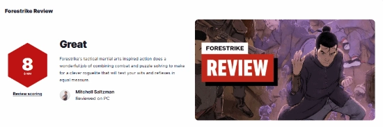 11月20日,国外媒体IGN给近期推出的功夫题材roguelite游戏《预视武宗》给出了8分的评价,评价中提到这款游戏“将战斗与解谜元素巧妙融合,并且对武术致以了由衷的敬意”。