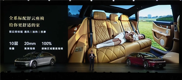 空间表现越级,甚至比更尺寸更大的宝马7系、奔驰S级还要优秀,并全系配备舒云座椅、副驾驶零重力座椅等,还提供7处超快充接口。