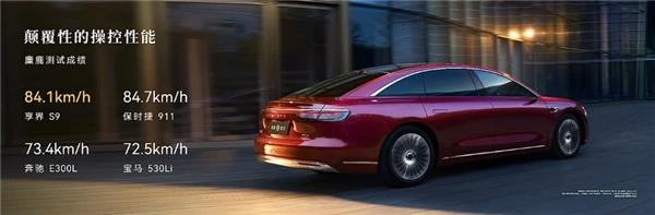 更令人惊喜的是,全新S9搭载了与尊界同源平台的全新六合一全域融合架构,其麋鹿测试最高通过速度达到84.1km/h,可与保时捷911相媲美;百公里制动距离仅为32.32米,这一成绩同样领先于传统豪华轿车。
