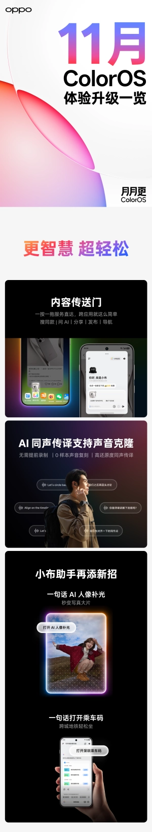 从ColorOS 16带来的系统革新,到外观颜值与影像能力的双重赋能,OPPO Reno15系列依靠全面且均衡的综合实力,成为了中端手机市场的标杆产品。而此次ColorOS 16首次月度更新的正式推送,进一步提升了该系列机型的使用体验——无论是追求操作流畅度的办公人群、看重外观设计的年轻用户,还是热衷于拍摄创作的影像爱好者,都能在OPPO Reno15系列上获得十分优异的使用感受。目前这款新机已启动预售,并将于11月21日在全渠道正式发售,届时用户可通过OPPO官方网站及各大电商平台了解详情并进行购买。