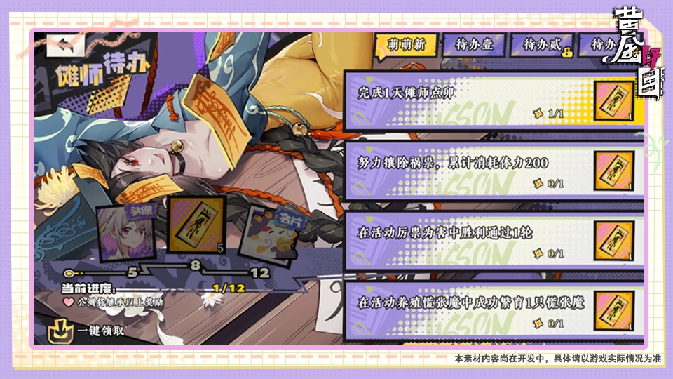 参与养殖慌张魔活动,完成相应订单与任务,点亮Bingo中的慌张魔图鉴,就能领取看板【养殖慌张魔】。活动期间,还有机会赢取【神秘头像】喵!不仅如此,【琉璃眼】、【祈神符箓】以及众多养成好礼也在等你来拿噢~