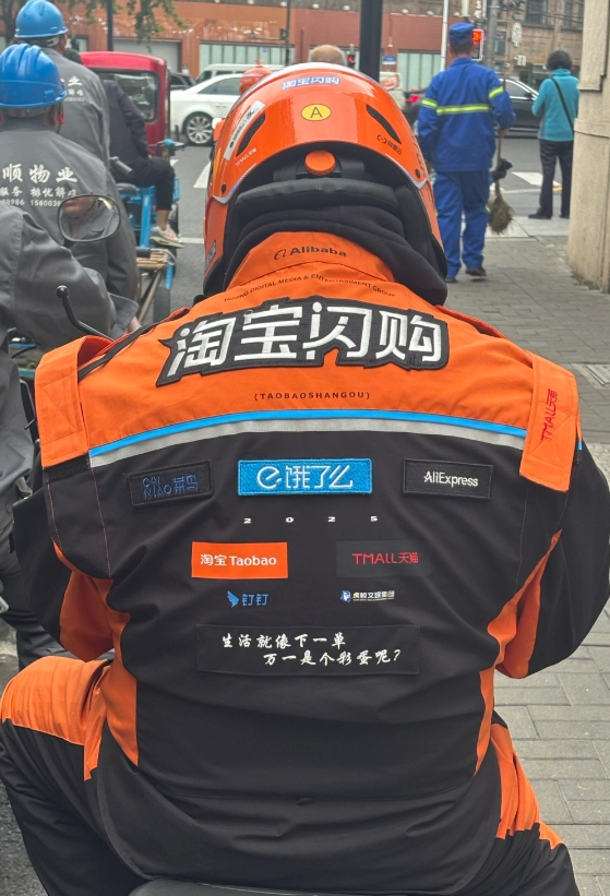 小雷曾留意到,有淘宝闪购的骑手吐槽这新衣服印了阿里、菜鸟、闲鱼好几个阿里系品牌的 LOGO,感觉自己像个行走的广告牌,走到哪儿都在帮平台做宣传。