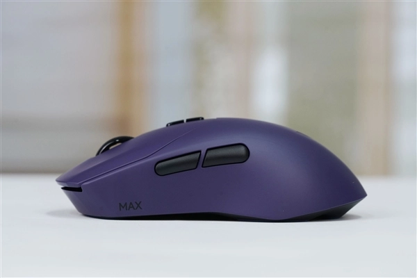 雷柏VT9 MAX版的三维尺寸为125*65*39mm,相比一代机型更为纤薄修身。其侧腰采用内凹式设计,搭配宽体三角区的发力点布局,能够增强大小鱼际对鼠标的抓握掌控力,同时让拇指与小指的摆放更显自然,有助于用户进行快速提拉和精准微调操作。