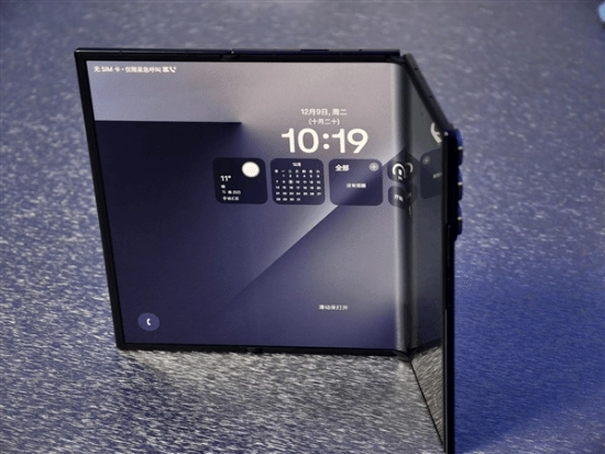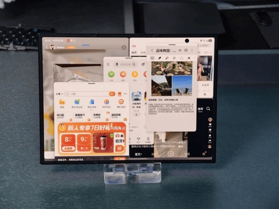 而且也因为这个双向内折的结构,它可以把两侧稍微折一点,立在桌面上形成一个半环绕的大屏,观影沉浸感很独特,属于三折独有的形态优势。