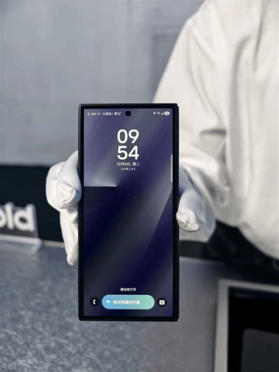 折痕一直是折叠屏产品最受关注的敏感点,三折设计的机型尤其容易引发用户对这一问题的担忧。Galaxy Z TriFold的内屏特别添加了减震强化涂层,在正常正视屏幕的情况下,折痕几乎不可见,完全不会对日常使用和观影体验造成影响;只有从侧面观察时,才能看到两条比较浅淡的痕迹,但即便如此,也不会干扰到日常的操作流畅度。