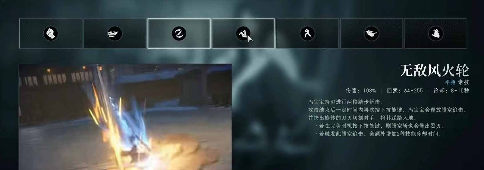 在向前冲刺时,可来回施展穿刺动作。登记结束后,再次点击该技能,会出现一段追击的刃风,能击飞对手。使用这段追击技能时,其制约时间会大幅延长。第二个技能是持刀进行两段斩击,后续还能再次添加该技能以释放二段攻击。角色的凭证可用于防御,在对手平招时触发,还能点击反击。最后可将手中刀刃扔向对手,只要命中,就能迅速提升自身速度。