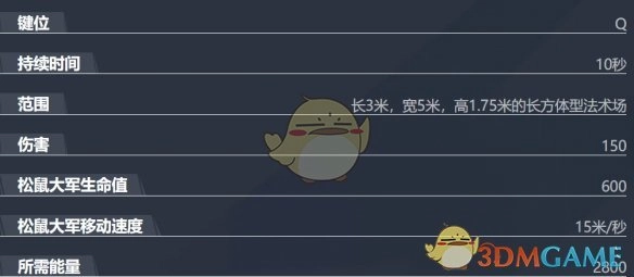 Q技能 - 松鼠大军,必胜:召唤出松鼠大军朝着前方奋勇冲锋,对敌人造成巨额伤害。