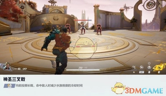 神圣三叉戟技能效果为:朝着前方投掷长戟,当长戟命中敌人之际,会使水族统御技能的冷却时间缩短。