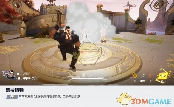 投掷会阻碍视野的烟雾弹,紧接着自身向后跳跃。