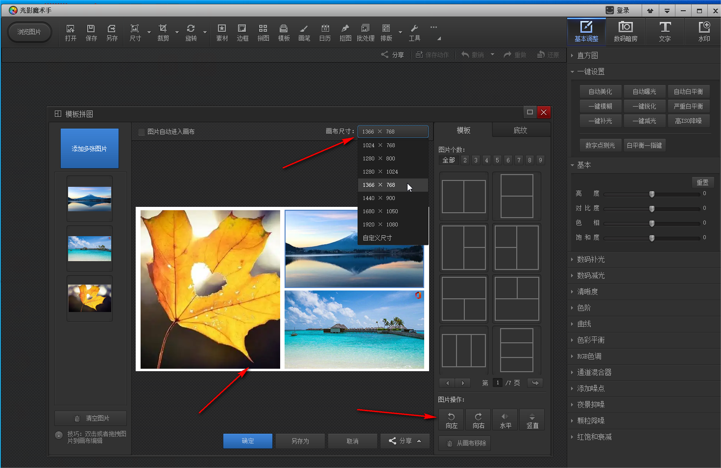 “自由拼图”,请在新窗口中点击“添加多张图片”