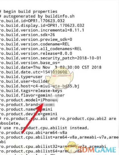 6、查找【ro.product.model=】这一行,在【=】之后,将内容改成你期望的型号。