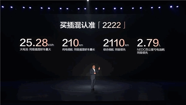 这款车型搭载了第五代DM-i混动系统,其中1.5L发动机的最大功率为74千瓦,电机的最大功率则达到120千瓦,在NEDC工况下的馈电油耗更是低至2.79升每百公里。