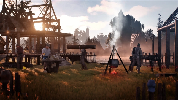 在生存之外,基地建造与资源管理同样是游戏的核心玩法。游戏建造秉持“循序渐进”的设计理念,玩家需要先搭建棚屋、伐木场、采矿场、农场、厨房等基础设施,以此满足生存需求和资源获取的基本条件。随着资源的不断积累以及科技树的逐步解锁,军械库、铁匠铺、图书馆、屠宰场、防御工事等更先进的建筑也会依次开放。这些建筑不仅能够有效提升资源的生产效率,还能为玩家提供武器装备、训练士兵、增强村民技能等多方面的支持。比如,图书馆可让村民按照设定的优先级自动阅读藏书,从而提升自身的各项技能;军械库能够实现武器装备的自动化生产,确保士兵拥有充足的装备补给;防御工事则可以帮助玩家抵御强盗和王室军队的袭击,守护城镇与村民的安全。