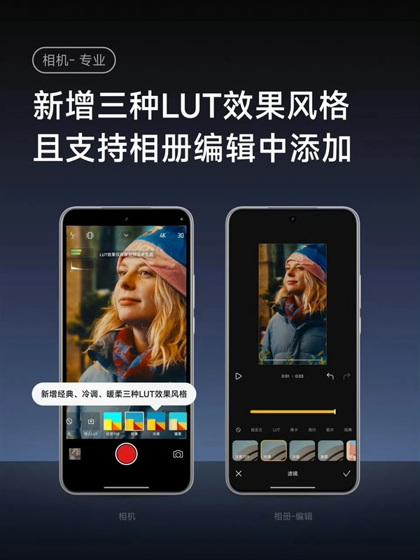 5.专业录像LOG支持更多LUT。LOG拍摄中的预览更生动真实
