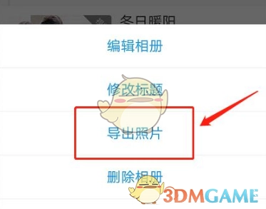 3、于弹出窗口的菜单栏选项里,点击【导出照片】。