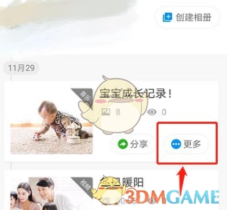 2、【我的相册】中保存的皆是我们之前制作完成的相册,依据时间线找到你想要导出照片的那个音乐相册,点击右边的【更多】