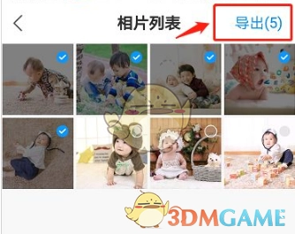 4、最后选定需要导出的照片,接着点击右上角的【导出】按钮。